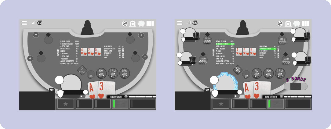Built interactive prototypes to test information layout, betting flow, and visual cues for decision support.